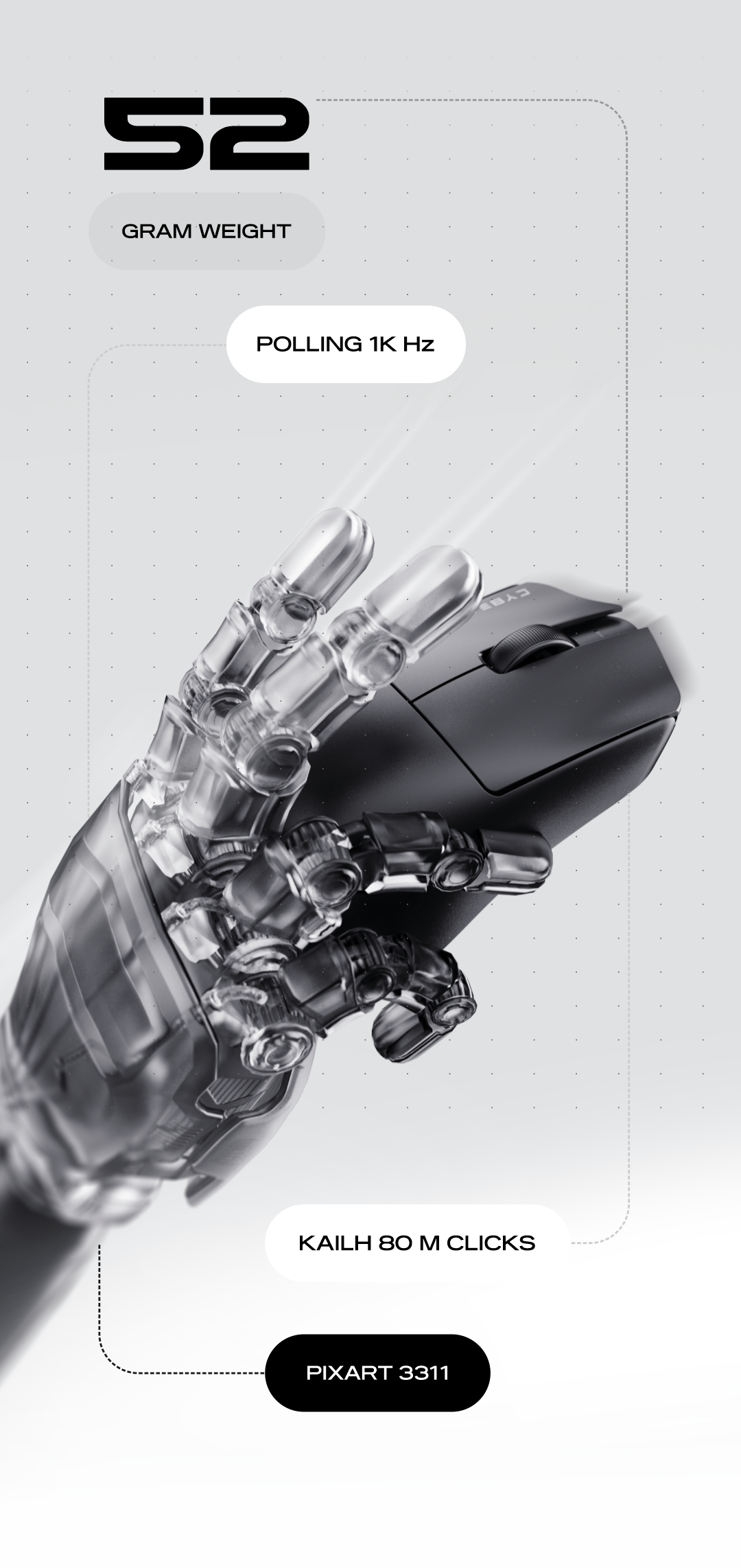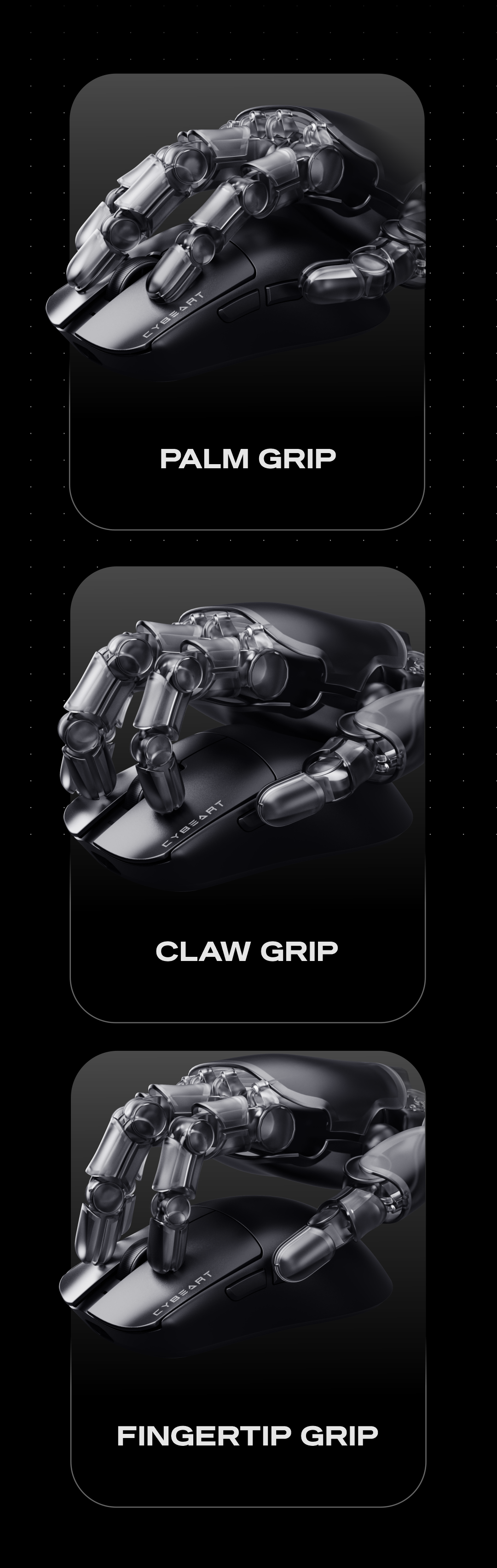 Embrace the freedom to game or work your way with the Artemis, designed to accommodate all your preferred grip style.