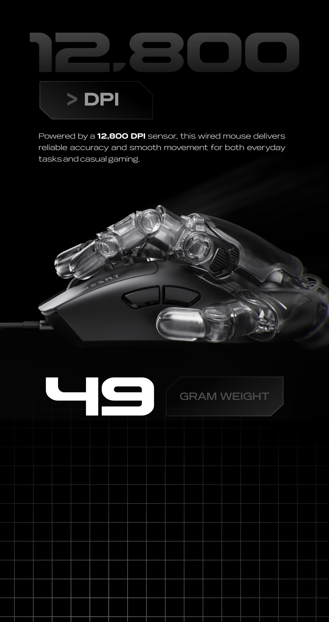 Designed for dependable performance, the wired connection ensures zero input lag and consistent power at all times, Whether you're gaming or working, it delivers a stable, plug-and-play experience without interruptions, simple, reliable, and always ready when you are.
